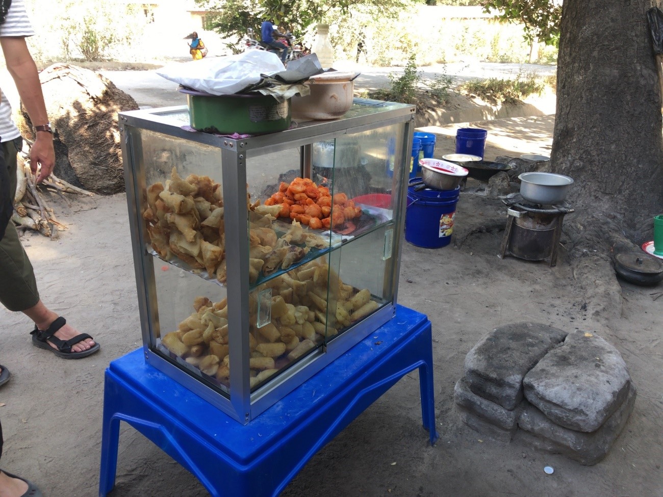 たまにですが、お店の前でキャッサバやサモサなどを売っているところも見かけます。