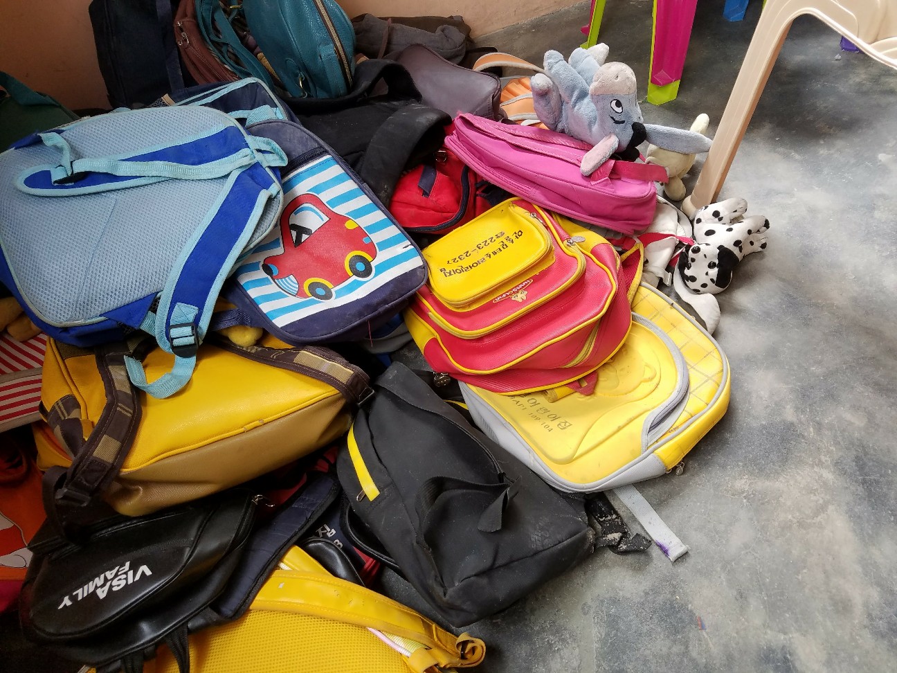 教室にロッカーなんかないからカバンは無造作に山積みに。