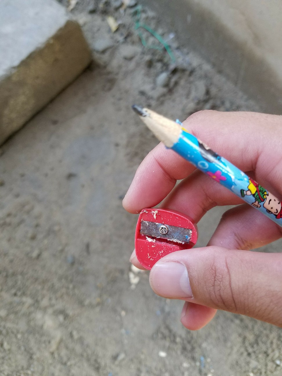 これで削るか、カッターで僕たち先生が1本1本毎日削っていた。
