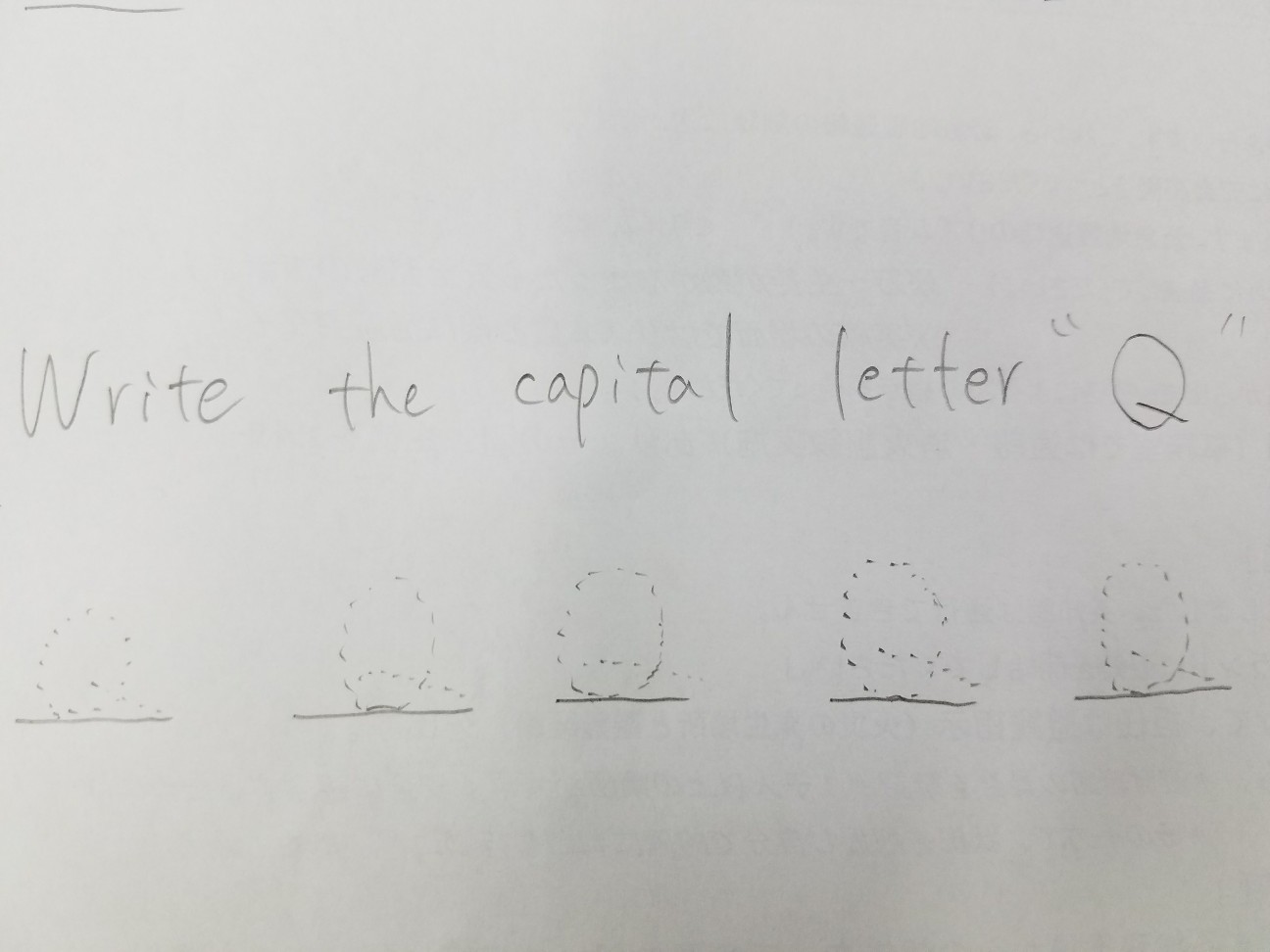うまく書けない子には先生が点々でABCDや数字を書く。
