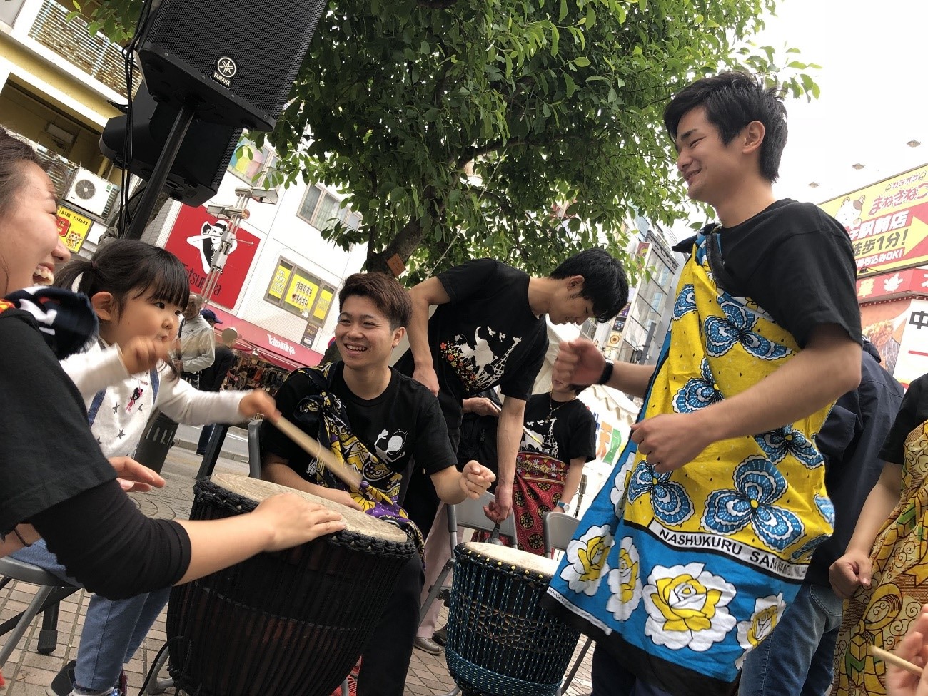 パンアフは三崎町公園前で11:00~11:30まで演目をやらせていただきました。多くの方々が足を止め、楽しんでくださいました!アフリカパワーのすごさを改めて実感するひと時となりました^^