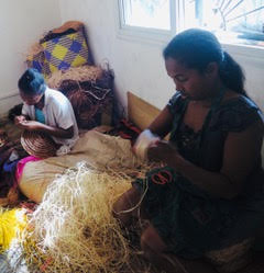 ラフィアを編むことは生計を立てることでもある現地の女性。