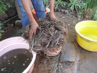 こうして下準備したラフィアを今日は現地で栽培しているSAHA