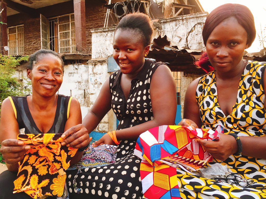 こちらはAdama、Patricia、Jessica、Fatuの4名の女性たちに簡単な小物(ヘアゴムやお守り)の制作をお願いしています。いつも夜ごはんを用意してくれて、一緒に食べます。フォートストリートの多くの住民が2016年の火事で家を失い、彼女たちは現在もユニセフのテントで暮らしています。